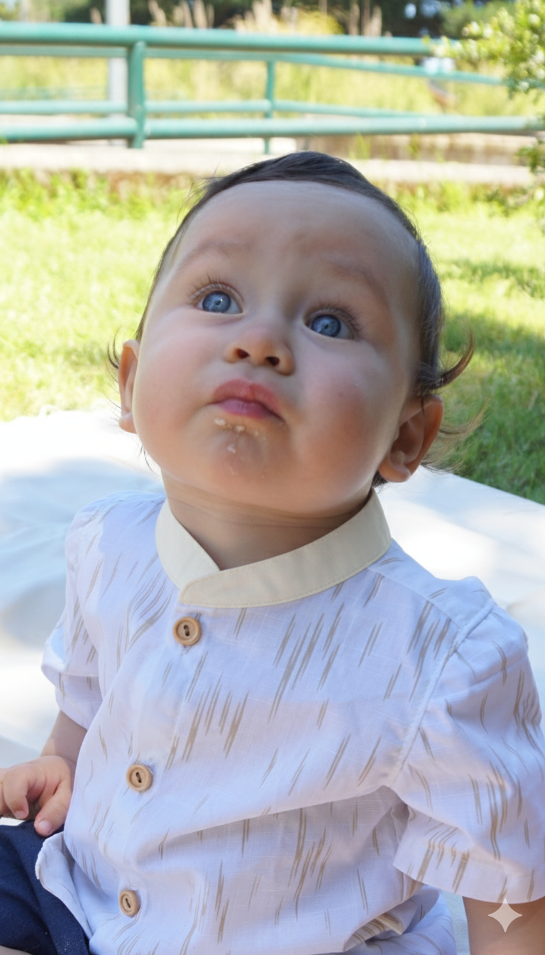 Cómoda y holgada en algodón estampado pensada para acompañar las aventuras de tus niños. Tiene cuello mao que no se abotona lo que permite mayor comodidad y libre movimiento.