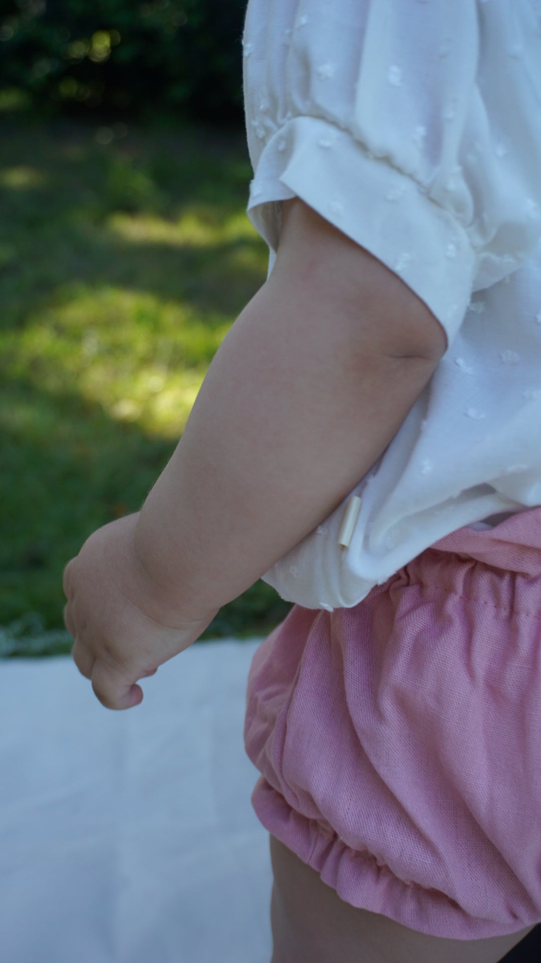 Añade un toque de dulzura y confort natural al guardarropa de tu bebé con nuestro cubrepañal estilo bloomer confeccionado en lino.