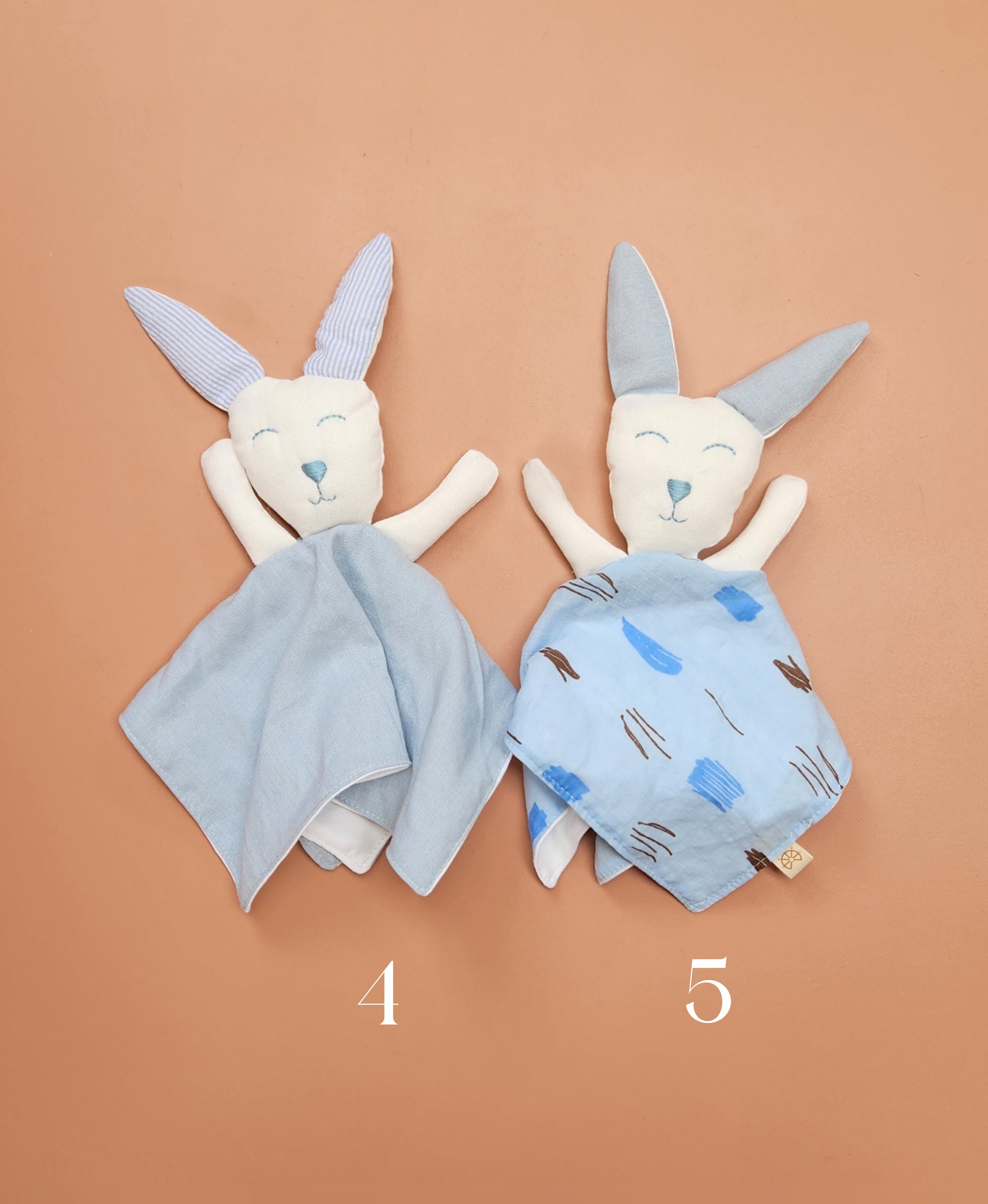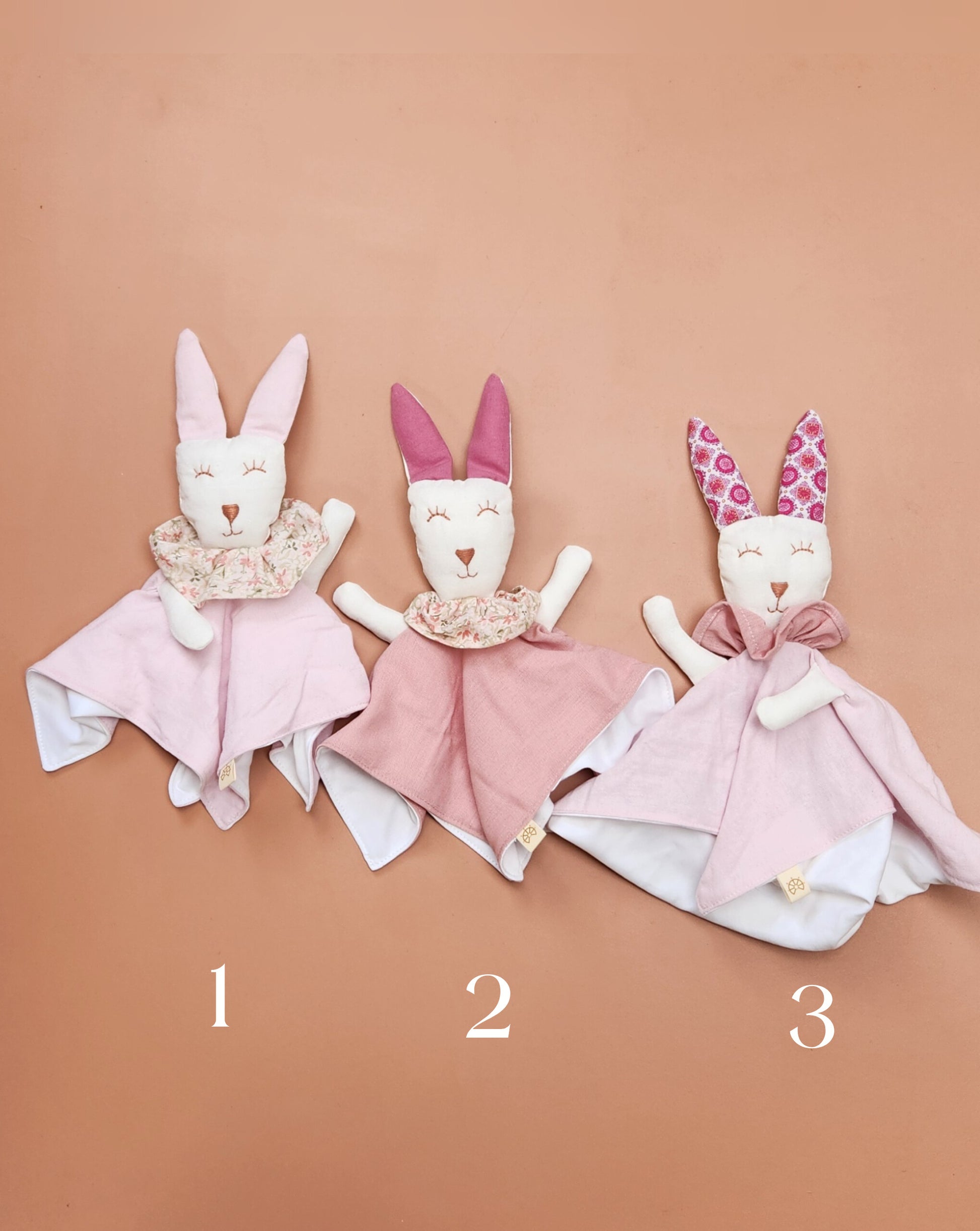 Confeccionado en 100%algodon pima peruano blanco y sus detalles son en algodón o lino según el color, carita bordada a mano con hilo DMC 100% algodon
